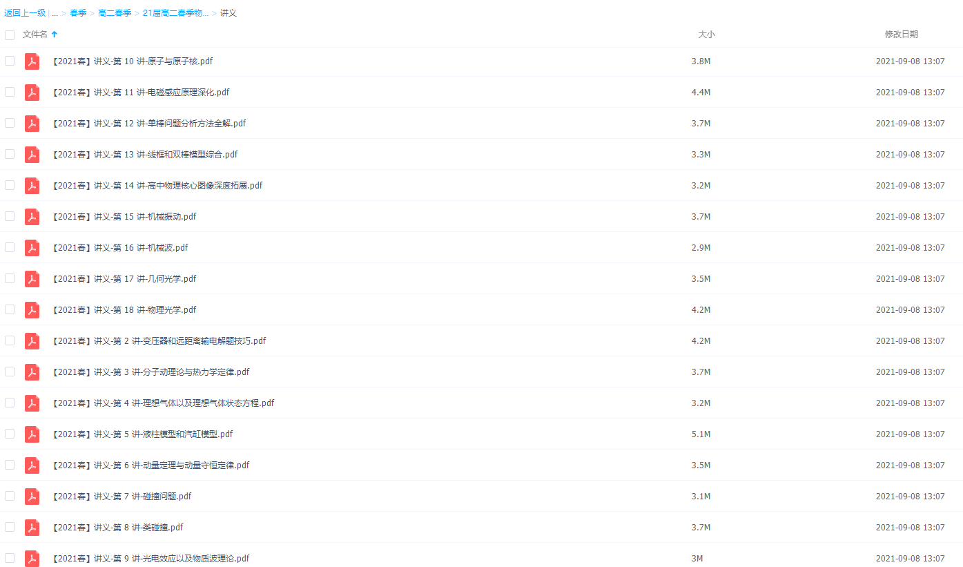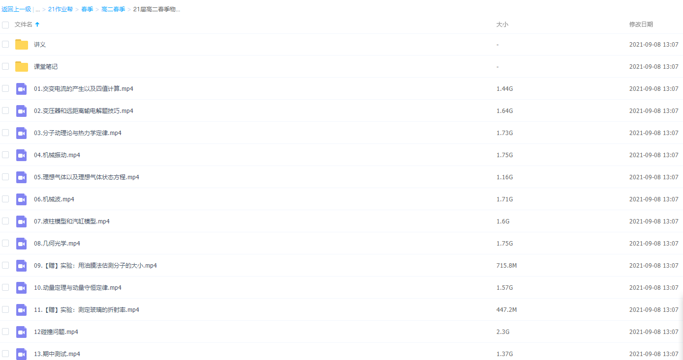 此课件来自作业帮网校,2021作业帮高二春季物理李婷怡尖端直播课,包括课程视频回放以及资料讲义。主讲李婷怡老师将知识点用最能够让学生理解的方式讲述,把难题方法以最清晰的逻辑讲述岀来,题型阶梯形设计,让学生在轻松的心情下把难题一一攻克。此课件知识点主要包括:交变电流的产生以及四值计算、压器和远距离输电解题技巧、分子动理论与热力学定律、机械振动、理想气体以及理想气体状态方程、机械波、液柱模型和汽缸模型等视频。