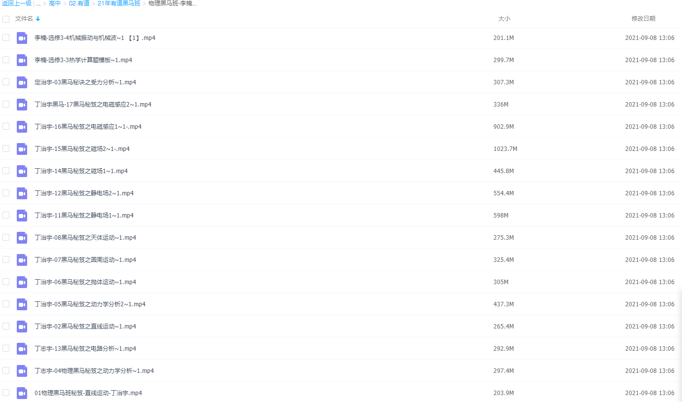 此课件来自有道精品课,2021有道精品课丁治宇、李楠高考物理黑马班视频课程。此课件知识点主要包括:丁治宇老师直线运动、受力分析、动力学分析、抛体运动、圆周运动、天体运动、能量分析、动量分析、静电场、电路分析、磁场、电磁感应等。还有李楠物理选修重难点抢分班选修3-3热学计算题模板、选修3-3热学选择题模板、选修3-4光、电磁波与相对论简介、选修3-4机械振动与机械波和选修3-5近代物理。