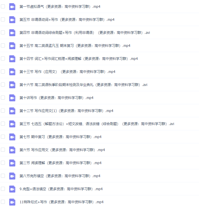 此课件来自猿辅导网校,高二英语孟凡玉秋季视频课程完结。此课件主要知识点包括:完形填空、阅读理解、写作应用文、七选五(解题方法论)、写作(应用文)、非谓语动词综合刷题、虚拟语气语法改错(综合刷题)等等视频课程