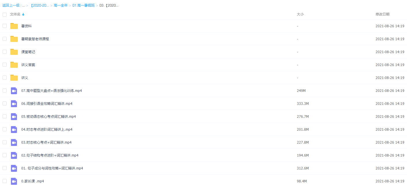 此课件来自作业帮网校,袁慧2020暑高一英语尖端班,包含视频课程和讲义资料。主讲袁慧老师独创“浸入式”英语学习法,轻松高效记单词,化繁为简学语法,总结阅读完形七选五独家解题口诀,又快又准解难题。此课件主要知识点包括:句子成分与词性攻略+词汇精讲、句子结构考点进阶+词汇精讲、时态核心考点+词汇精讲、时态考点进阶词汇精讲、间接引语全攻略词汇精讲等视频。