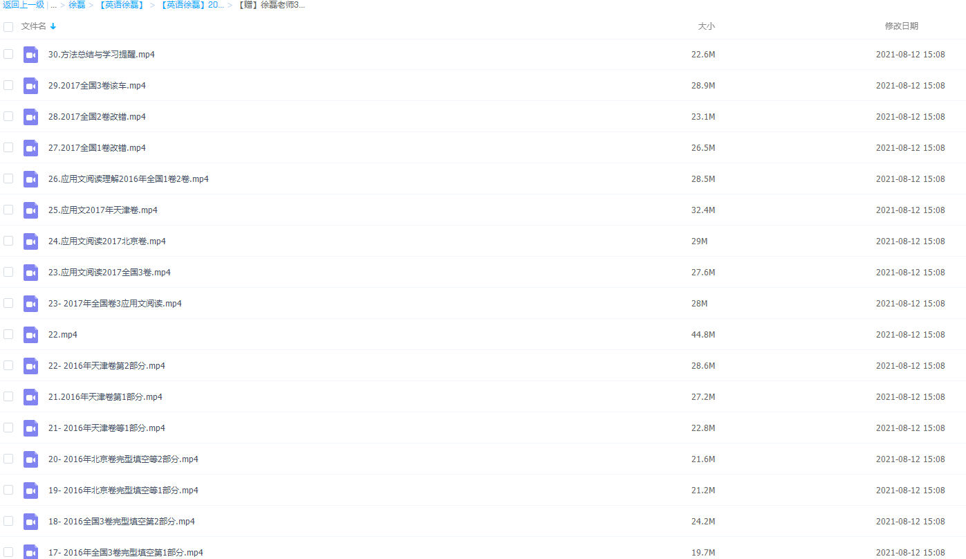 徐磊老师在帮助学生加深理解书本知识的同时,扩大学生的知识面,拓展学生的思维,真正提高学生的英语素养,徐磊老师30天打卡英语真题精讲里资源如下: