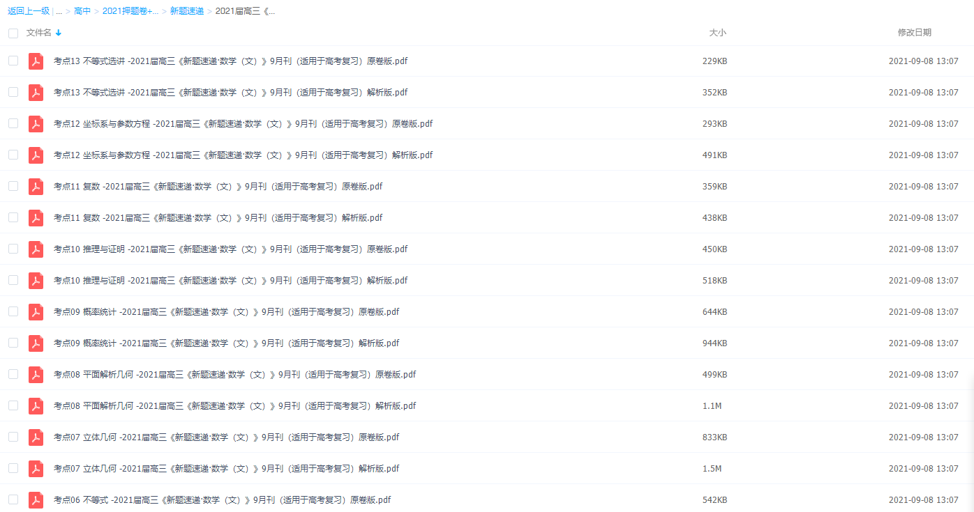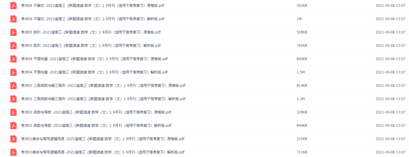 在高考之前我们尽力去查漏补缺,及时纠错,改正过来,我们的总成绩就会有所提升,提一分就拉千人,切勿因小失大。学长也提醒大家刷题也要注意,高考前有必要刷一刷新题型,这样我们能掌握最新的出题方式,早有应对之策。今天教育盘小编给大家整理了()2021届高三《新题速递·数学(文)》)都是今年各省份新题型的整理归纳,含有详细的解析,强烈建议高三生人手一份,打印复习。