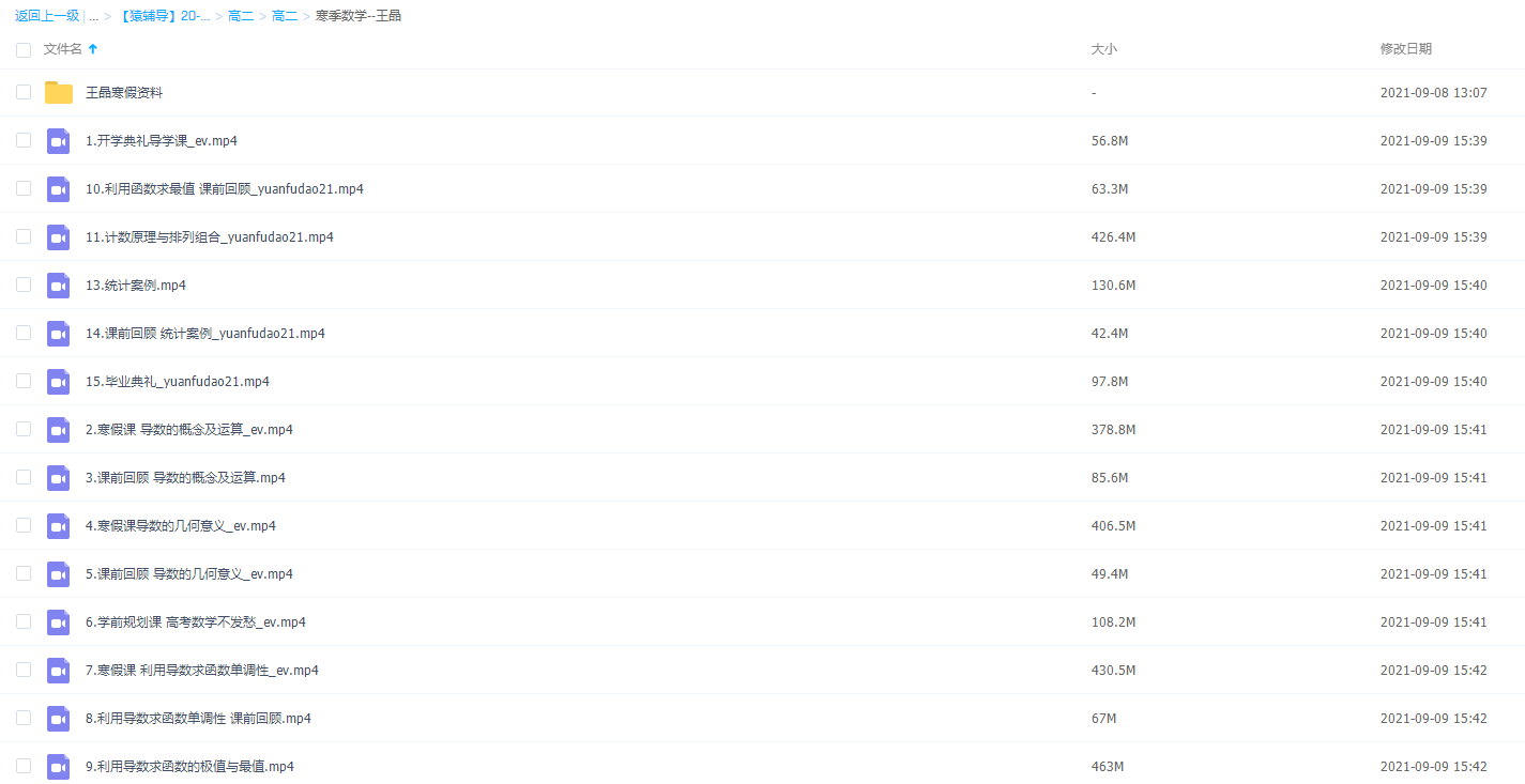 此课件来自猿辅导网校,2021猿辅导高二寒季王晶数学视频课程。主讲王晶老师启发式教学+思路的引导+激发学生思考的兴趣+循序渐进讲解知识,深入浅出+认真负责。帮助学生健全知识体系,总结方法模型,提升学生的解题技巧。此课件知识点主要包括:.利用函数求最值、计数原理与排列组合、导数的概念及运算、导数的几何意义、利用导数求函数单调性、利用导数求函数的极值与最值等视频。