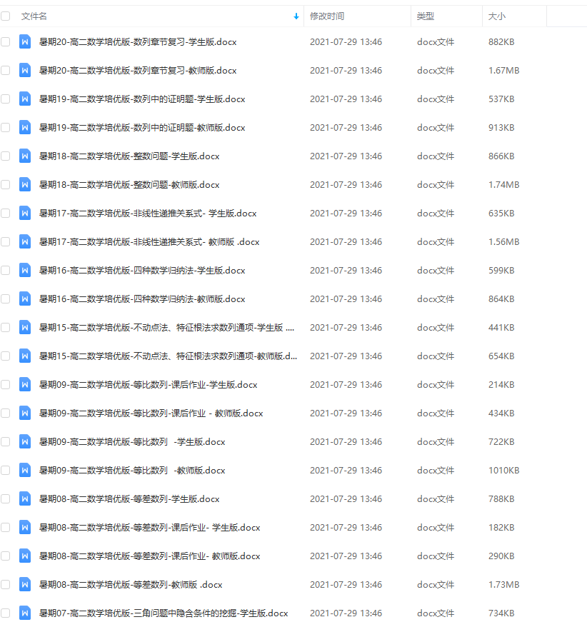 本课件是高二数学暑假班课程,里面包含文档讲义,整理了很多有用的知识点,可以帮助同学们有效地练习数学,提高自己的数学水平!