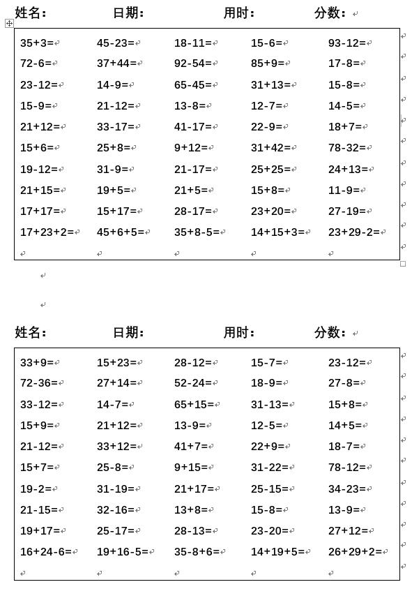 姓名: 日期: 用时: 分数: