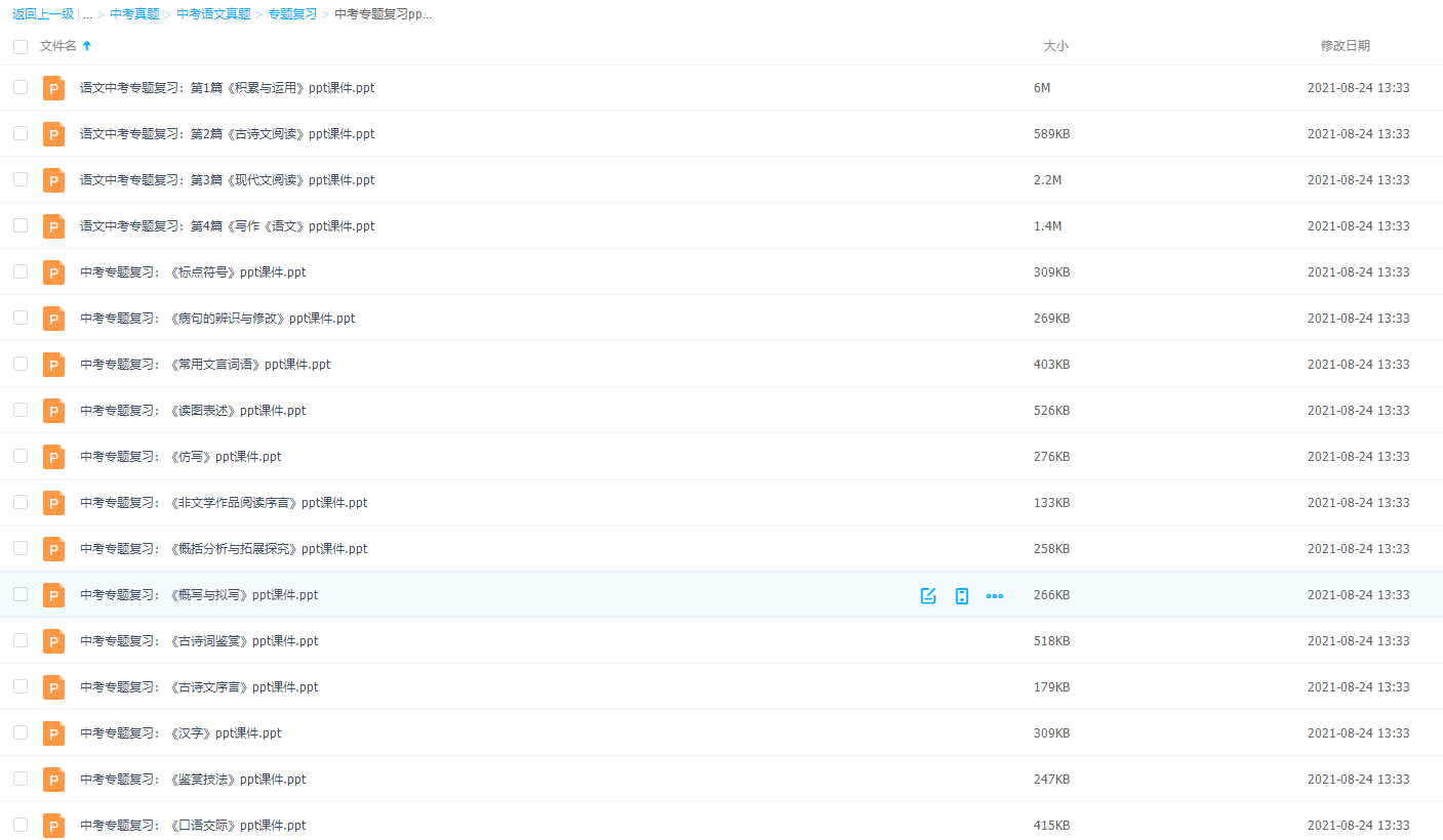 汉语是世界上最美、最丰富的语言,中考语文专题复习ppt课件34份常用文言词语仿写古诗词鉴赏等题型,带你练习!