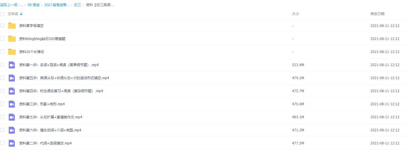 此课件来自课堂,2021课堂初三英语寒假毕玉琦视频课程 ,包含视频课程和讲义资料 。 此课件主要知识点包括:词+冠词+阅读(简单细节题)、宾语从句+状语从句+次的适当形式填空、:时态语态复习+阅读(复杂细节题)、形副+完形、从句扩展+邀请类作文、情态动词+介词+完型和代词+选词填空等视频