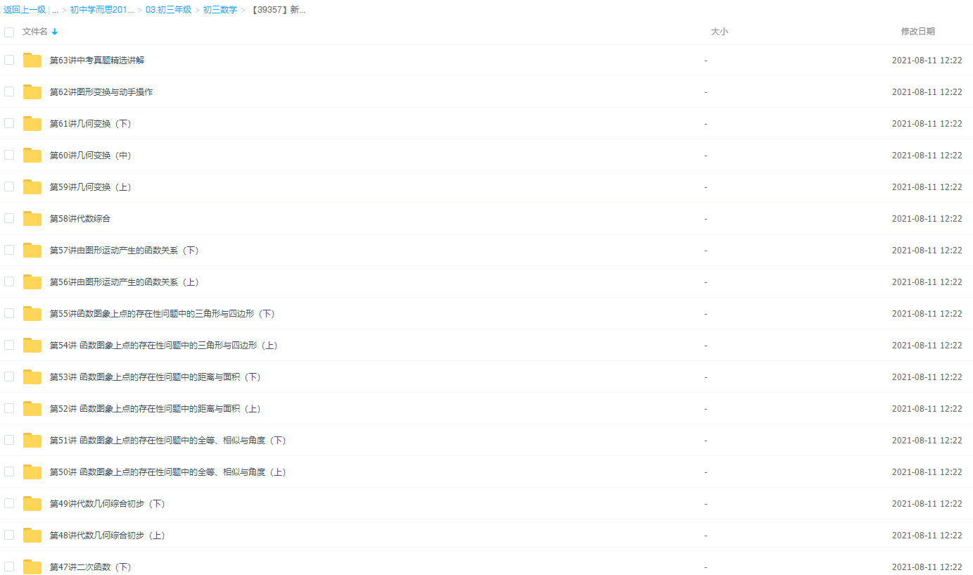 此课件来自学而思网校,【39357】新初三数学年卡尖子班(浙江浙教版)64讲朱韬,包含视频课程和讲义资料 。此课件的主要内容包括:中考系统复习之二次函数、中考系统复习之一次函数与反比例函数、二次函数的基本解析式与图像变换、中考系统复习之代数几何综合等视频。