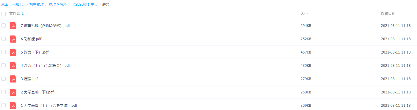 此课件来自作业帮网校,作业帮2020寒假中考物理冲顶班(力学)(李海涛),包含视频课程和讲义资料。主讲李海涛老师用小学生听得懂的方式讲解大招,如8字模型,生死符,高温侧有冰水。此课件主要内容包括:简单机械(含阶段测试)、功和能、浮力、力学基础 等等视频