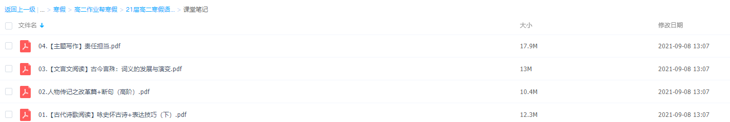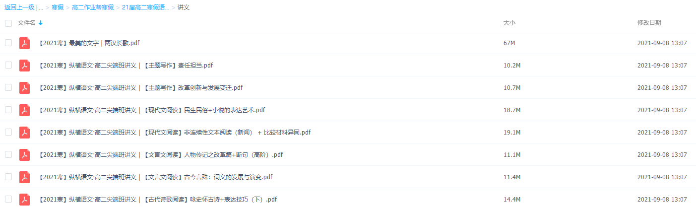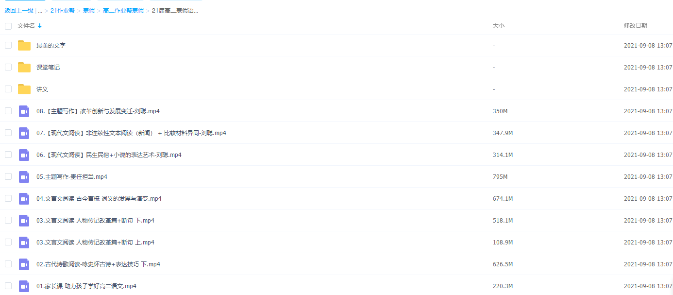 语文是一门基础学科,学好语文,提高正确理解运用语言文字的水平,有利于我们学好其他各门学科;掌握语文学习的基本方法,养成自学语文的习惯,培养发现、探究、解决问题的能力,还能为继续学习和终身发展打好基础。通过语文学习,使我们具有适应实际需要的现代文阅读能力、写作能力和口语交际能力,具有初步的文学鉴赏能力和阅读文言文的能力,这有利于我们将来走向社会、适应社会,更好地发挥自己的聪明才干;此课件来自作业帮网校,2021作业帮高二寒假语文刘聪尖端版完结,包括课程视频回放以及资料讲义。